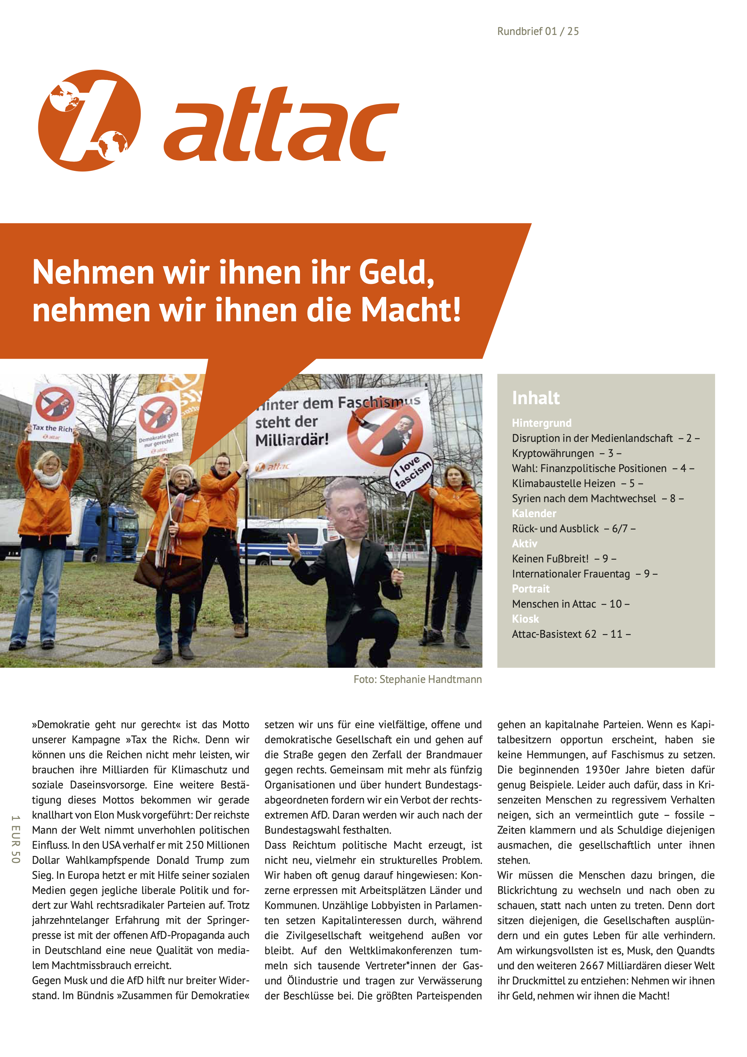 Attac-Rundbrief 01/2025: Nehmen wir ihnen ihr Geld, nehmen wir ihnen die Macht!